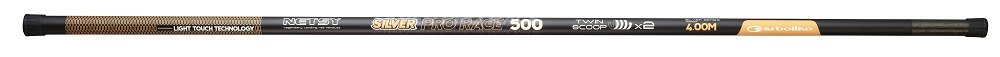 NETSY SILVER PRO RACE 500 TWIN SCOOP TabsProduct OverviewThe Silver Pro Race landing net handle is the top of the range, premium addition to the hugely popular Netsy range. Crafted from high-performance HM carbon and finished with double durable brass screw threads for lasting strength, these handles combine quality, reliability, and unbeatable value — making them the perfect choice for every angler who demands the best. This High-end landing net handle has the "Twin scoop" option of two riveted brass screw threads. By removing the top section you will obtain a very rigid POWER version. Specification HM Carbon construction Two riveted brass threads Twin scoop 4m length 3 sections SKU: GOMNP6153400-3 Length: 4mSections: 3Price: £134.99