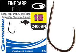 COMMERCIAL COMPETITION F1 FINE CARP BARBLESS TabsProduct OverviewOur consultants have been working together to produce the ultimate range of hooks that will cover all aspects of match fishing. Whether its F1s, large carp, skimmers, or silvers on natural venues, you will find a hook in our fantastic new range that will suit your needs. Competition "FINE CARP F1" . Black Nickel hook with wide gape and reversed point. Made from a fine but strong steel making these hooks ideal for UK commercials. Spade end and barbless. A very versatile hook which will find its place in many anglers tackle. Packs of 15 hooks Specification Black nickel finish Wide round gape Barbless Spade end Fine wire SKU: GOMAM02400BN-0010 Size: 10Price: £2.99 SKU: GOMAM02400BN-0012 Size: 12Price: £2.99 SKU: GOMAM02400BN-0014 Size: 14Price: £2.99 SKU: GOMAM02400BN-0016 Size: 16Price: £2.99 SKU: GOMAM02400BN-0018 Size: 18Price: £2.99